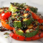 This Balsamic Grilled Vegetables recipe features a medley of zucchini, bell peppers, eggplant, and red onions marinated in a tangy balsamic vinaigrette before being grilled to tender perfection. Infused with fresh herbs and optional spices, this vibrant dish offers a flavorful and healthy way to enjoy seasonal vegetables, ideal as a side or a light main course with added protein like tofu or chickpeas.