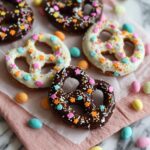 - Decorate: Immediately after dipping, sprinkle each pretzel with pastel sprinkles or press mini candy eggs onto the chocolate for a festive Easter look.