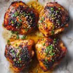 This recipe features tender boneless skinless chicken thighs marinated in a flavorful teriyaki sauce, then pan-seared to juicy perfection. Garnished with sesame seeds and sliced green onions, it’s a quick and delicious dish perfect for a weeknight dinner.