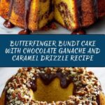 Butterfinger Bundt Cake with Chocolate Ganache and Caramel Drizzle Recipe