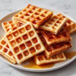 These Cornbread Waffle Bites with Honey Butter Syrup are a delicious twist on classic cornbread, cooked in a waffle maker for a crispy exterior and tender interior. Enhanced with optional cheddar cheese and bacon, and served with a warm, sweet honey butter syrup, they make a perfect breakfast or snack.