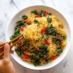 This Easy Lo Mein recipe combines tender noodles with fresh vegetables and a flavorful sauce, perfect for a quick, satisfying vegetarian Asian-inspired meal. Loaded with mushrooms, bell peppers, carrots, spinach, and aromatic garlic and ginger, it’s a wholesome dish that comes together in just 20 minutes on the stovetop.