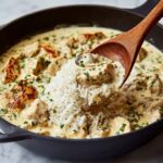 French Onion Chicken Rice is a comforting one-pan dish that combines caramelized onions, tender chicken, and creamy melted Gruyère cheese with long-grain white rice. Inspired by the rich flavors of classic French onion soup, this recipe features golden-browned onions cooked in butter and white wine, simmered with rice and broth, then finished with juicy chicken and savory cheese for a hearty and delicious meal perfect for any night of the week.