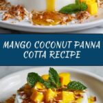 Just before serving, garnish your Mango Coconut Panna Cotta Recipe with fresh mango slices, a sprinkle of toasted coconut flakes for crunch and aroma, and a few mint leaves for a pop of green freshness. Enjoy the compliments that follow!
