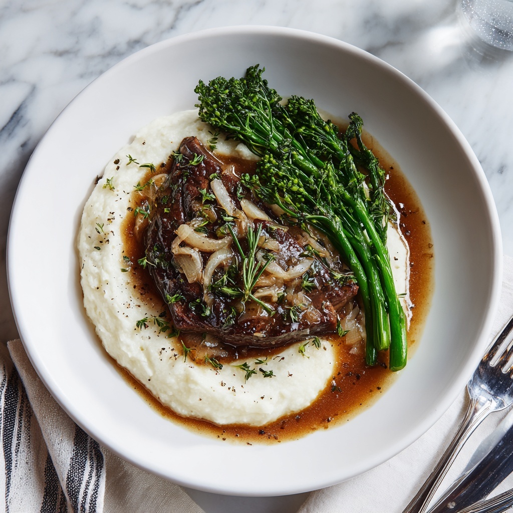 This rich and hearty Red Wine Braised Short Ribs recipe features tender, slow-braised beef cooked in a flavorful red wine and herb sauce. Perfectly paired with creamy mashed potatoes and steamed broccolini, this dish is ideal for a comforting dinner that fills the home with irresistible aromas.
