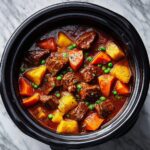 This Wholesome Crockpot Beef Stew is a hearty, comforting dish perfect for cozy dinners. Tender stew meat simmers slowly with aromatic herbs, robust red wine, beef stock, and a medley of fresh vegetables, creating a rich and flavorful meal. Enhanced with a touch of tomato concentrate, Worcestershire sauce, and optional gravy master for depth of color, this stew is an ideal use of a slow cooker to develop deep, comforting flavors with minimal effort.